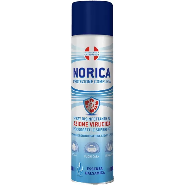 Spray disinfettante ad azione virucida per oggetti e superfici.