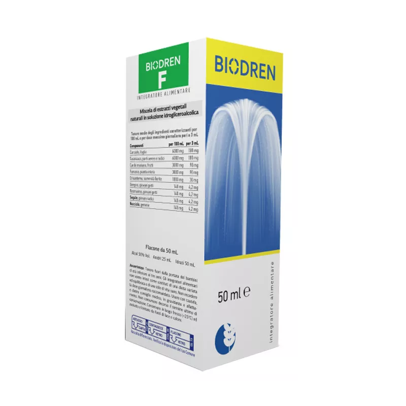 Ingredienti Alcool (50% vol.), acqua; stabilizzante: glicerolo; carciofo (Cynara scolymus L.) foglie, tarassaco [Taraxacum officinale (L.) Weber] parti aeree e radici, cardo mariano [Silybum marianum (L.) Gaertn.] frutti, fumaria (Fumaria officinalis L.) pianta intera, crisantemo [Chrysanthellum americanum (L.) Vatke] sommità fiorite, ginepro (Juniperus communis L.) giovani getti, rosmarino (Rosmarinus officinalis L.) giovani getti,