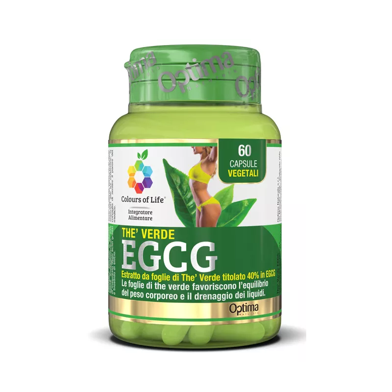 Descrizione Integratore alimentare in capsule a base di estratto di foglie di Thè verde titolato in polifenoli ed epigallocatechinagallato (EGCG).