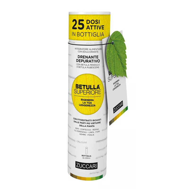 Ingredienti Betulla (Betula pendula Roth) linfa; addensanti: pectina amidata, gomma di xantano; aroma naturale; acidificante: acido citrico; betulla (Betula pendula Roth) corteccia e.f., betulla (Betula pendula Roth 50%, Betula pubescens Ehrh. 50%) foglie e.s. 4:1, betulla (Betula pendula Roth) gemma e.s. 1:10, betulla (Betula pubescens Ehrh.) fiori e.m. 1:10, betulla (Betula pendula Roth) resina e.s. 4:1, betulla (Betula lenta L.) olio essenziale, betulla (Betula pendula Roth) seme e.m. 4:1, pilosella (Hieracium pilosella L.) parte aerea e.s. tit. vitexina 1%, tarassaco [Taraxacum officinale (L.) Weber ex F.H.Wigg.] radice e.s. tit. inulina 20%, equiseto (Equisetum arvense L.) parte aerea e.s. tit. silicio 1%, ortosifon [Orthosiphon aristatus (Blume) Miq.] parte aerea con fiore e.s. tit. sinensetina 0,2%, solidago (Solidago virgaurea L.) parte aerea con fiore e.s. tit. iperoside 6%; conservanti: benzoato di sodio, sorbato di potassio; edulcorante: sucralosio.