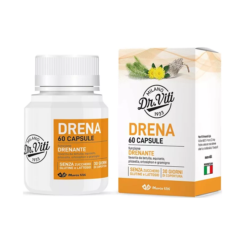 Integratore alimentare con betulla, equiseto, pilosella, ortosiphon e gramigna per favorire il drenaggio dei liquidi corporei.