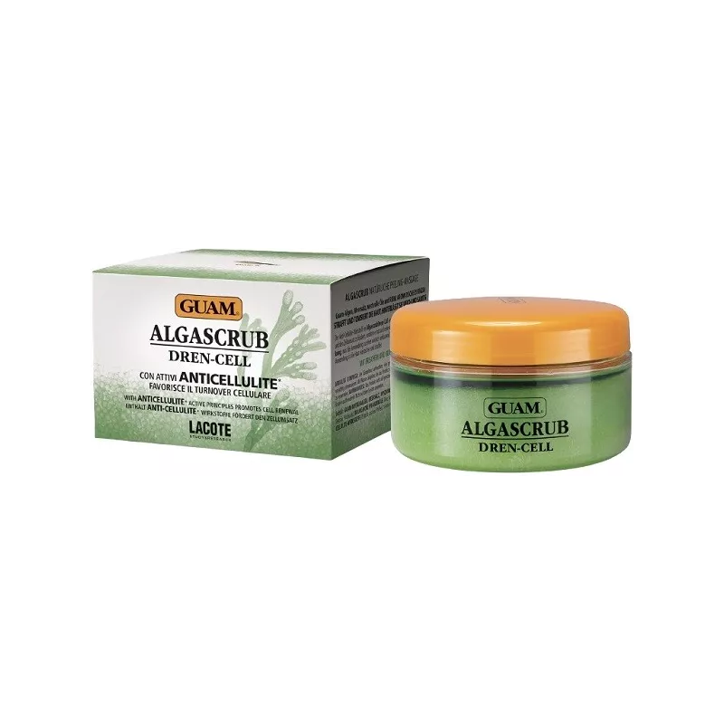 Algascrub massaggio esfoliante naturale. Sali, alghe marine guam, oli pregiati e pure essenze aromatiche. Rassoda e tonifica la pelle lasciandola morbida e vellutata. Il principio attivo anticellulite presente in algascrub dren-cell consente al prodotto non solo di esfoliare la pelle, favorendo il turnover cellulare, ma svolge anche un'azione drenante e anticellulite rendendo l'applicazione un vero e proprio trattamento funzionale completo. Dopo l'applicazione la pelle risulterà più elastica e tonica. Contiene: alghe guam, sale marino, mix di oli essenziali (limone, bergamotto, geranio, patchouly), oli vegetali biologici (oliva, girasole, canapa), vitamina E e F, attivi anticellulite (estratto di semi di pepe rosa). Profumazione fresca e fiorita.