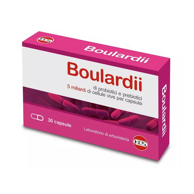 Descrizione Integratore alimentare di probiotici e prebiotici, 5 miliardi di cellule vive per capsula. I probiotici (Saccharomyces boulardii) e i prebiotici (inulina) favoriscono l'equilibrio della flora intestinale.