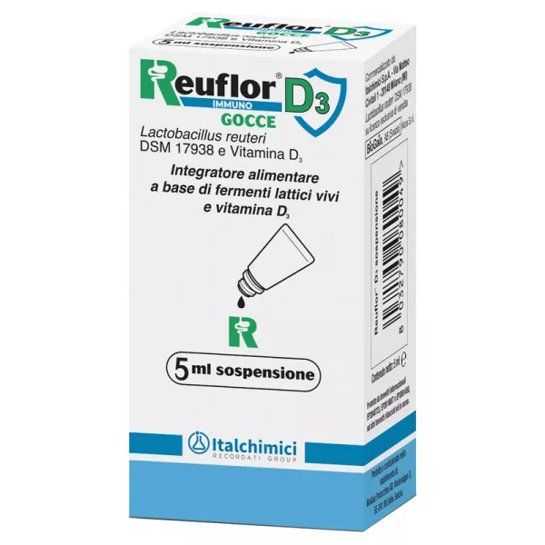 Descrizione Integratore alimentare a base di fermenti lattici vivi e vitamina D3 Lactobacillus reuteri DSM 17938 favorisce l'equilibrio della flora intestinale. Il prodotto è inoltre utile per apportare una quota integrativa di vitamina D3 alla dieta quotidiana.
