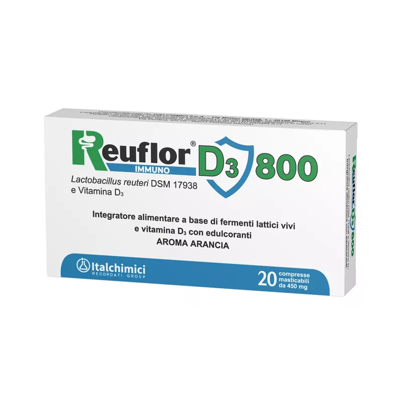 Ingredienti Edulcoranti: isomalto, xilitolo; Lactobacillus reuteri DSM 17938, olio di palma; agente antiagglomerante: sali di calcio degli acidi grassi; aroma arancia, vitamina D3 (colecalciferolo); esaltatore di sapidità: acido citrico.