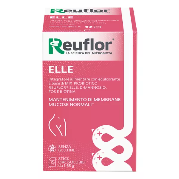 Integratore alimentare a base di un mix probiotico Reuflor Elle (Lactobacillus crispatus SP28, Lactobacillus gasseri LG050 e Lactobacillus rhamnosus Ca15) che contribuisce all’equilibrio della flora intestinale.