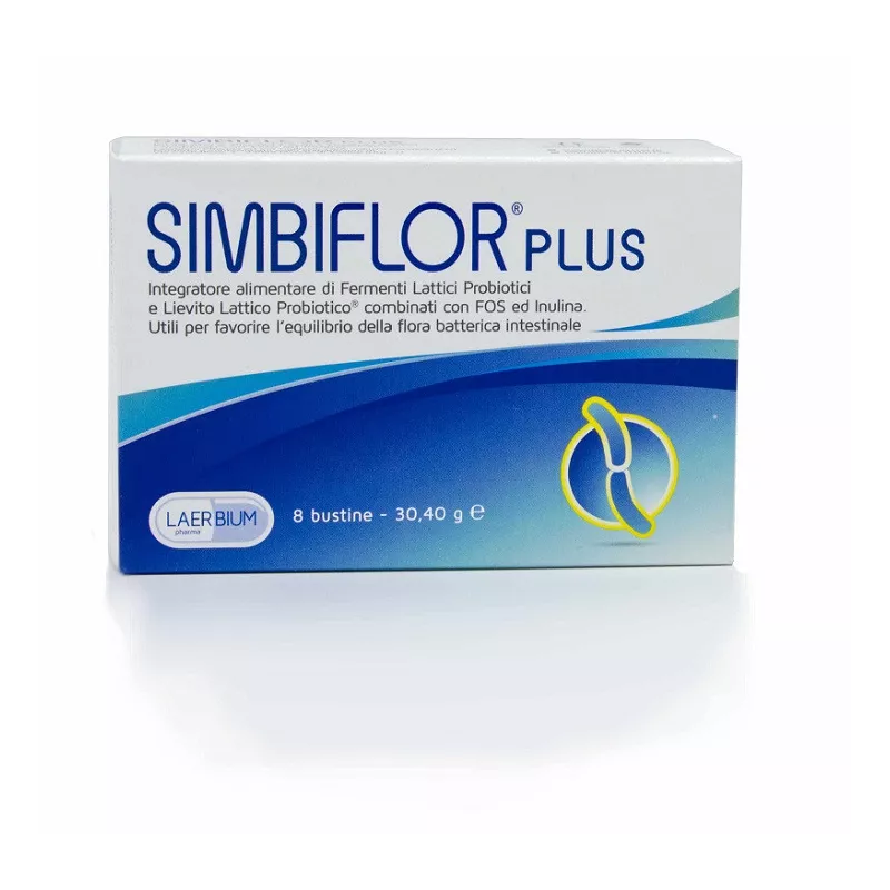 Integratore alimentare con simbiotico (associazione di alimento con probiotico ed alimento con prebiotico), utile all’equilibrio della flora microbica intestinale.