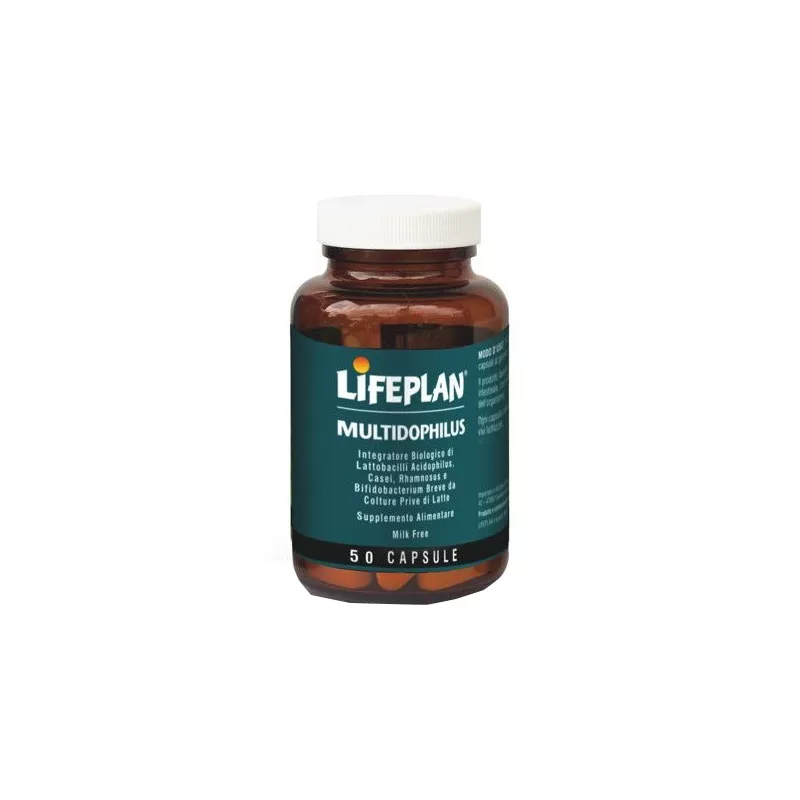 Integratore biologico di Lactobacillus acidophilus, Lactobacillus casei, Lactobacillus rhmanosus e Bifidobacterium breve da colture prive di latte.