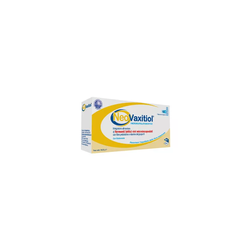 Descrizione Integratore alimentare a base di fermenti lattici vivi microincapsulati e vitamine del gruppo B. Favorisce l'equilibrio della flora intestinale. NeoVaxitiol è indicato per favorire il ripristino del fisiologico equilibrio della flora batterica intestinale che può essere alterato da squilibri alimentare o terapie antibiotiche. Inoltre, la vitamina B6 contribuisce alla normale funzione del sistema immunitario.