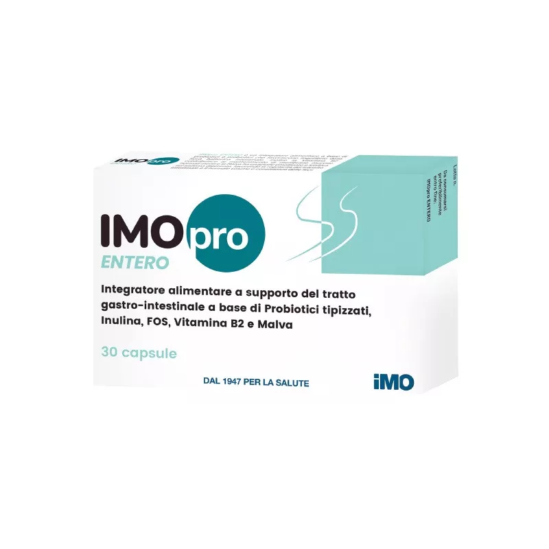 Descrizione Integratore alimentare a base di prebiotici e probiotici che favoriscono l’equilibrio della flora batterica intestinale. Inoltre la vitamina B2 contribuisce al mantenimento di membrane mucose normali mentre la malva ha un’azione emolliente e lenitiva sul sistema digerente, favorendo la regolarità del transito intestinale e il normale volume e consistenza delle feci. IMOpro entero può essere assunto nell’ambito di una dieta vegetariana o vegana. Non contiene allergeni, talco, biossido di titanio, glutine e lattosio. Contiene ceppi probiotici di origine umana sperimentati clinicamente, vivi, non microincapsulati.
