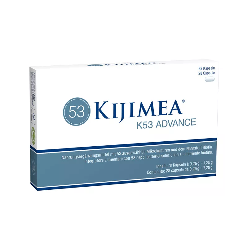 Inoltre Kijimea K53 Advance contiene biotina, che contribuisce al mantenimento delle membrane mucose normali.