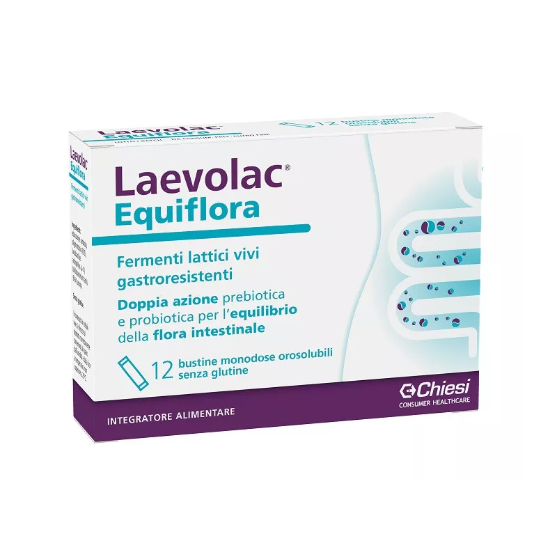 Laevolac Equiflora bustine monodose orosolubili svolge una doppia azione in quanto costituito dall’associazione di fermenti lattici probiotici con il nutriente prebiotico: