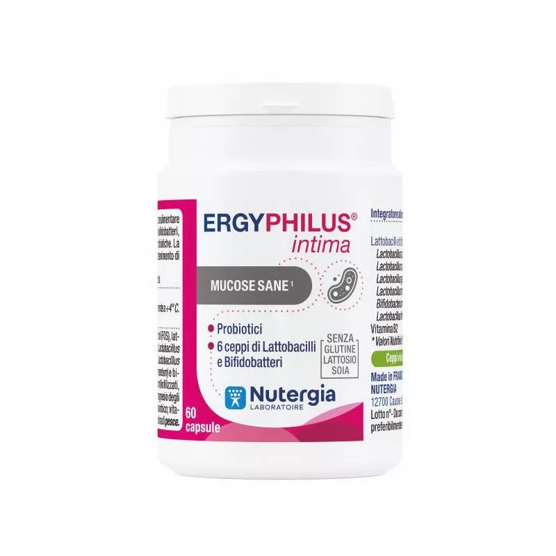 Ingredienti Amido di patata, frutto-oligosaccaridi (FOS), lattobacilli (Lactobacillus acidophilus, Lactobacillus crispatus, Lactobacillus gasseri, Lactobacillus rhamnosus GG, Lactobacillus fermentum) e bifidobatteri (Bi fidobacterium bi fidum) liofilizzati; agente antiagglomerante: sali di magnesio degli acidi grassi; antiossidante: acido ascorbico; vitamina B2 (riboflavina). Capsula: gelatina di