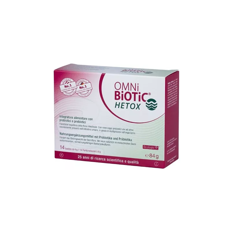 Modalità d'uso Sciogliere 1 bustina di OMNi-BiOTiC HETOX (pari a 6 g) 1 volta al giorno in circa 125 ml di acqua, attendere almeno 1 minuto (tempo di attivazione), mescolare nuovamente prima di bere. Si raccomanda di assumere il prodotto a stomaco vuoto.
