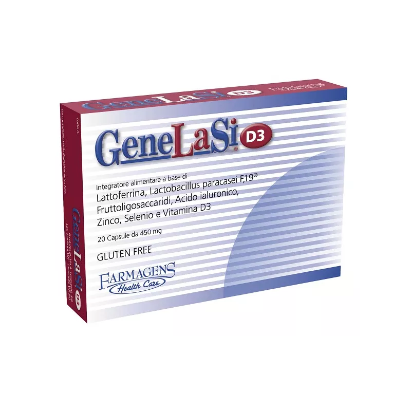 Descrizione Integratore alimentare a base di lattoferrina, Lactobacillus paracasei F19, fruttoligosaccaridi, acido ialuronico, zinco, selenio e vitamina D3. Il Lactobacillus paracasei subsp. paracasei F19 è utile per favorire il fisiologico riequilibrio della flora batterica intestinale.
