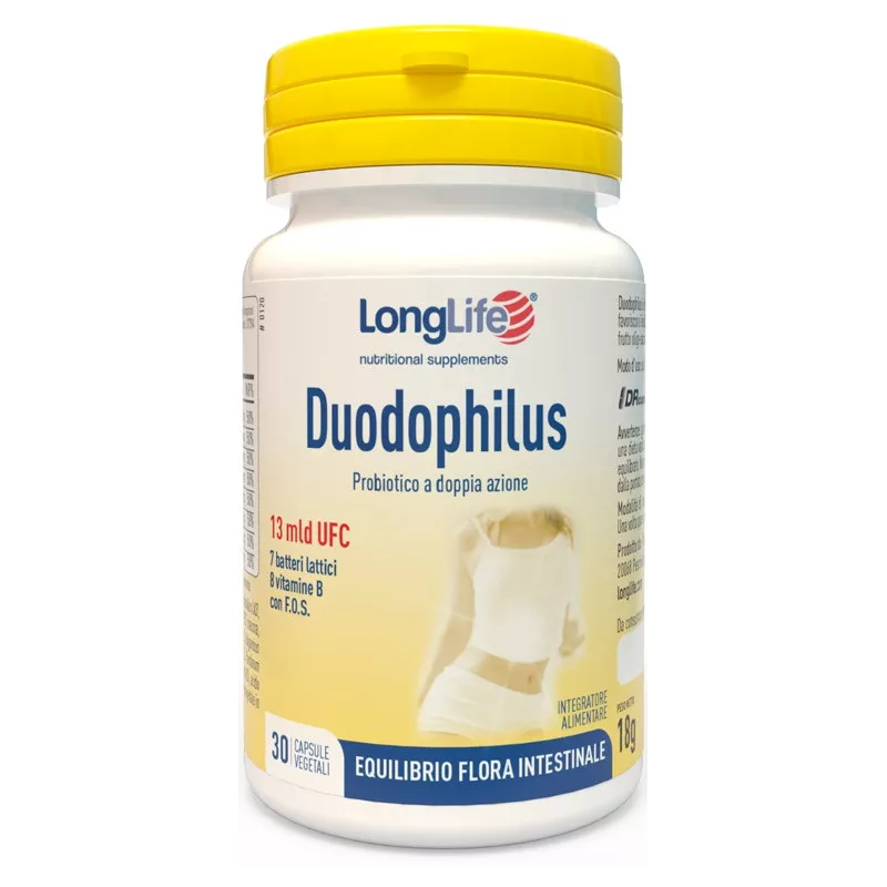 Descrizione Integratore alimentare con batteri lattici vivi e attivi (che favoriscono l'equilibrio della flora intestinale), vitamine del complesso B e frutto oligo-saccaridi (F.O.S.).