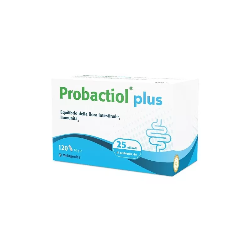 Descrizione Integratore alimentare con batteri probiotici vivi, vitamina A e vitamina D.