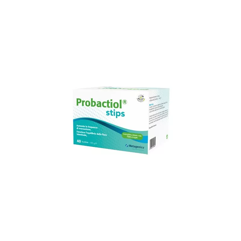 Integratore prebiotico a base di fibre solubili vegetali provenienti dalla cicoria. Ogni bustina di Probactiol Stips contiene 4 grammi di una miscela bilanciata di FOS (oligofruttosio) e inuline della cicoria. La particolare formulazione di Probactiol Stips permette di ottenere un'azione benefica sia nell'intestino tenue (grazie ai FOS) che nel colon (grazie alle inuline).