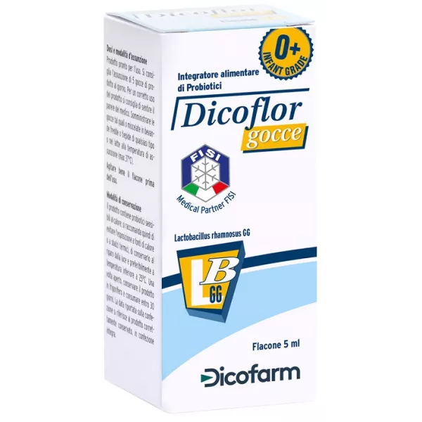 5 gocce apportano 5 miliardi di cellule vive (unità formanti colonie, ufc) di Lactobacillus rhamnosus GG (ATCC53103)