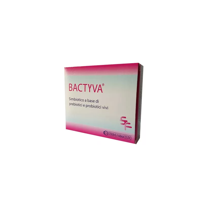 Simbiotico costituito da prebiotici e selezionati probiotici vivi che superano indenni il tratto gastro-intestinale. Bactyva permette una più rapida guarigione in caso di infezioni intestinali, riduce la sintomatologia associata all'uso di antibiotici, ha un effetto preventivo sulle infezioni ospedaliere, riduce il rischio di infezioni uro-genitali, è utile alle terapie di supporto ai trattamenti antitumorali.
