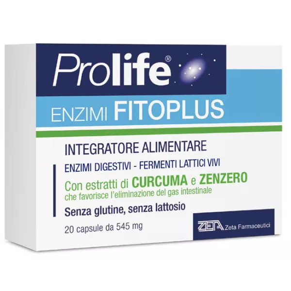 Contenuto interno: complesso enzimatico da substrati vegetali fermentati a base di: amilasi, proteasi, lipasi, cellulasi, glucanasi, xilanasi, pectinasi, fitasi, lattasi, maltasi, invertasi, bromelina; calcio fosfato, curcuma rizoma (Curcuma longa L.) e.s., zenzero rizoma (Zingiber officinale Rosc.) e.s., fermenti lattici vivi: Bacillus coagulans, BC4; agenti antiagglomeranti: stearato di magnesio, biossido di silicio.