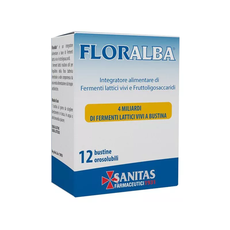 FLORALBA contiene Bifidobacterium Infantis M-63, Bifidobacterium BB-12, Lactobacillus Acidophilus LA-5 e fruttoligosaccaridi.