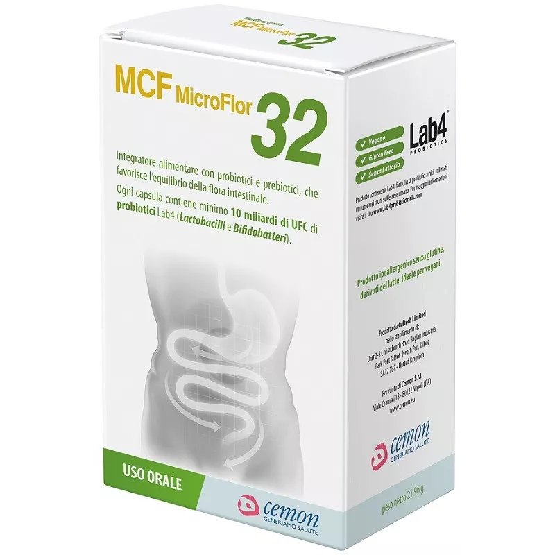 Ogni capsula contiene minimo 10 miliardi di UFC di probiotici Lab4 (Lactobacilli e Bifidobatteri).