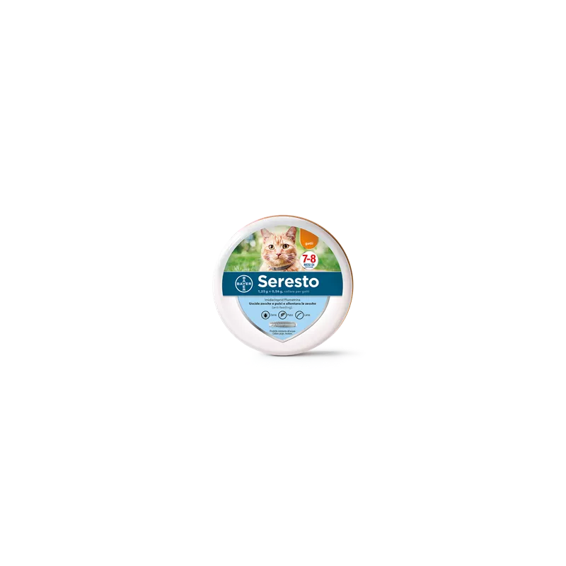 Gatti: per il trattamento e la prevenzione dell'infestazione da pulci ( Ctenocephalides felis ) per 7-8 mesi. Protegge l'ambiente circostante l'animale dallo sviluppo di larve di pulci per 10 settimane. Seresto puo' essere utilizzato come parte di una strategia di trattamento per il controllo della Dermatite Allergica da Pulci (DAP). Il prodotto ha per 8 mesi una persistente efficacia acaricida (abbattente) ( Ixodes ricinus, Rhipicephalus turanicus ) e un'efficacia repellente (anti-feeding) contro le infestazioni da zecche ( Ixodes ricinus ). Il prodotto e' efficace contro larve, ninfe e zecche adulte. Le zecche gia' presenti sul gatto prima del trattamento potrebbero non essere uccise entro 48 ore dopo l'applicazione del collare e restare attaccate e visibili. Si raccomanda pertanto di rimuovere le zecche gia' presenti sul gatto al momento dell'applicazione. La prevenzione delle infestazioni da nuove zecche inizia entro due giorni dopo l'applicazione del collare.