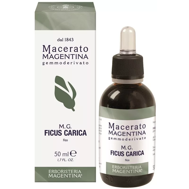 Integratore alimentare a base di fico. Il Macerato Magentina deriva dall'estrazione di gemme o giovani getti freschi raccolti da piante spontanee di provenienza italiana e senza OGM.
