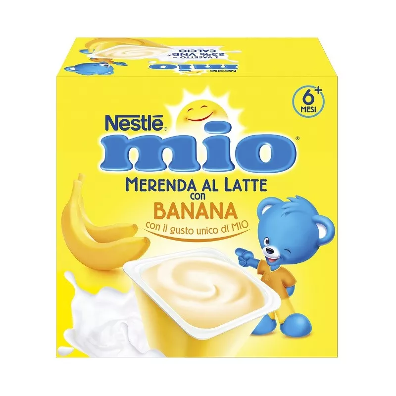 Merenda a base di latte con purea di frutta, è preparata con oltre il 75% di latte e contiene naturalmente calcio, che contribuisce allo sviluppo normale delle ossa.