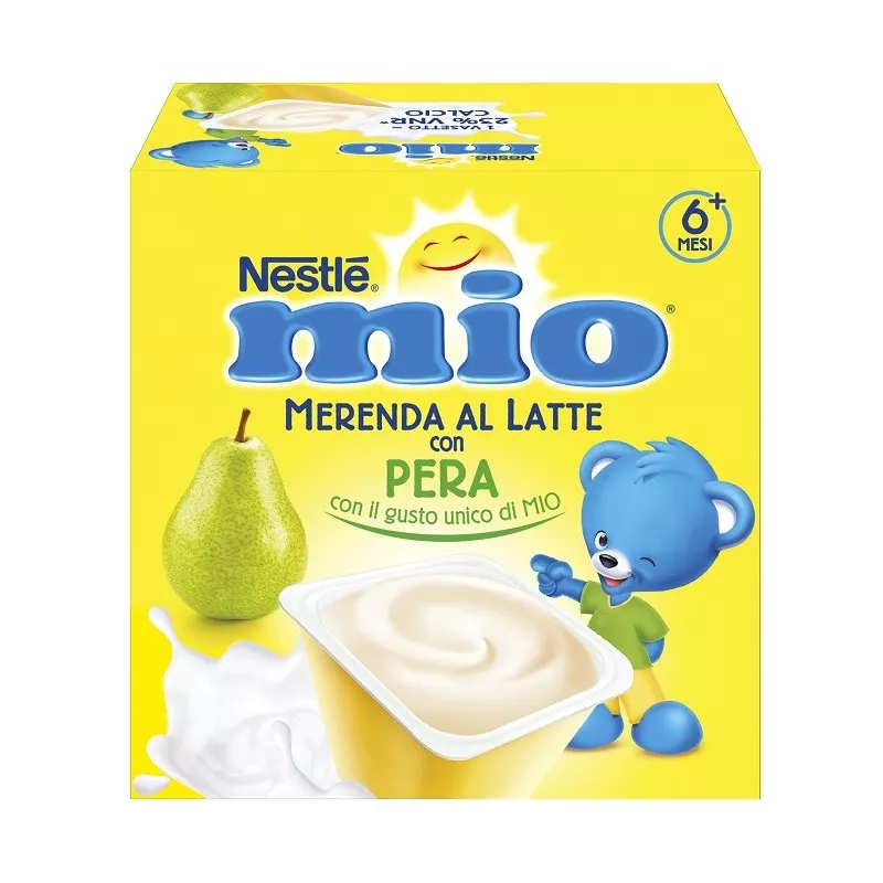 Merenda a base di latte con purea di frutta, è preparata con oltre il 75% di latte e contiene naturalmente calcio, che contribuisce allo sviluppo normale delle ossa.