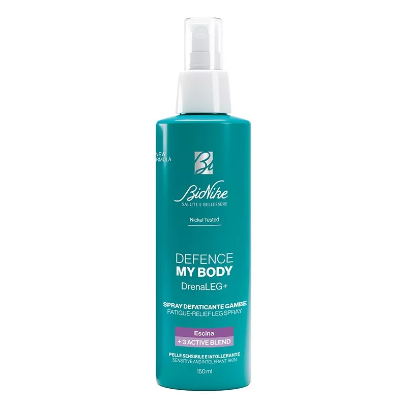 Spray defaticante gambe per pelle sensibile e intollerante con formula rinfrescante a base di escina e 3 active blend defaticante, studiata per contrastare la sensazione di pesantezza e gonfiori di gambe, caviglie e piedi fin dalla prima applicazione.