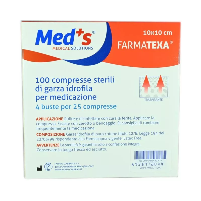 Garza idrofila puro cotone titolo 12/8, latex free.