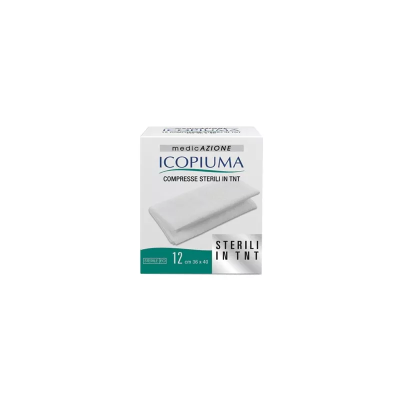 GARZA COMPRESSA IDROFILA IN COTONE PIEGATA STERILE ICOPIUMA SENZA FILO DI BARIO TITOLO 12/8 MISURA 18X40 CM IN BUSTA SINGOLA 12