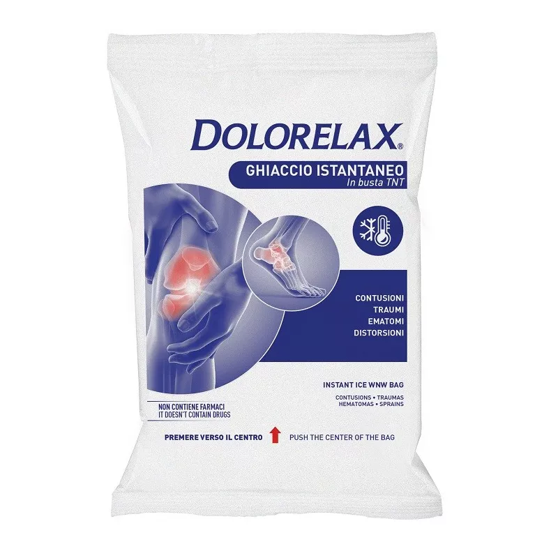 Premere con entrambe le mani verso il centro fino ad ottenere la rottura della bolla interna. Agitare il sacchetto per miscelarne il contenuto. Applicare sulla parte interessata.