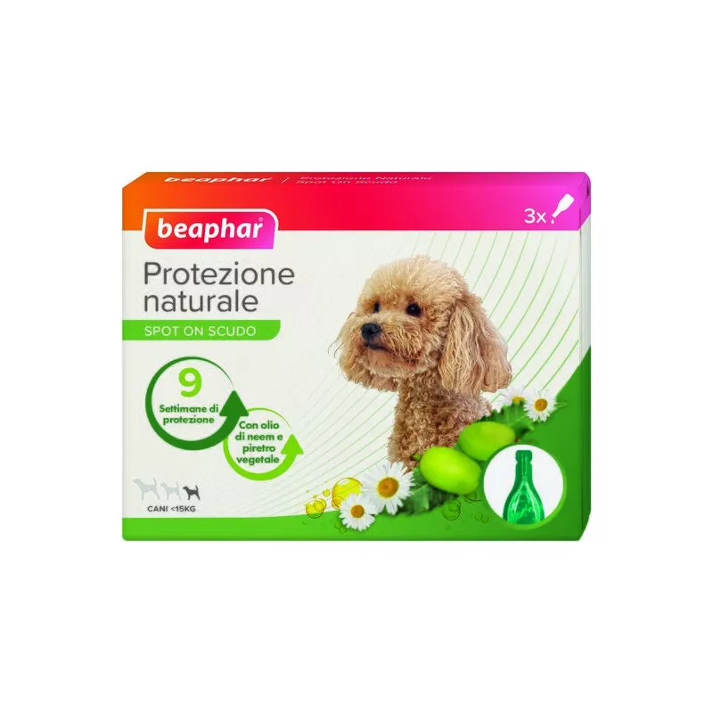 Fiale Spot On a base di olio di neem per cani adulti di taglia piccola. Nei periodi di infestazione primaverili è importante controllare spesso la cute e il mantello dell'animale per prevenire la trasmissione dei parassiti. Grazie alla presenza di olio essenziale di neem, estratto dai semi di Azadirichta indica, e all’estratto di piretro vegetale, la sua applicazione costante contribuisce a creare un ambiente sfavorevole all’insediamento di ospiti indesiderati.