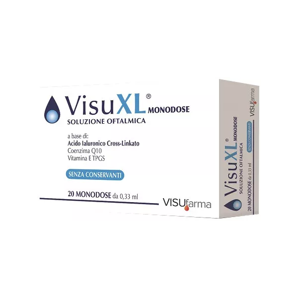 L’acido ialuronico cross-linkato è una forma di acido ialuronico più stabile ed efficace rispetto alla forma non stabilizzata che conferisce a VisuXL migliori proprietà viscoelastiche, mucomimetiche e idratanti ed una efficacia maggiore nel tempo.