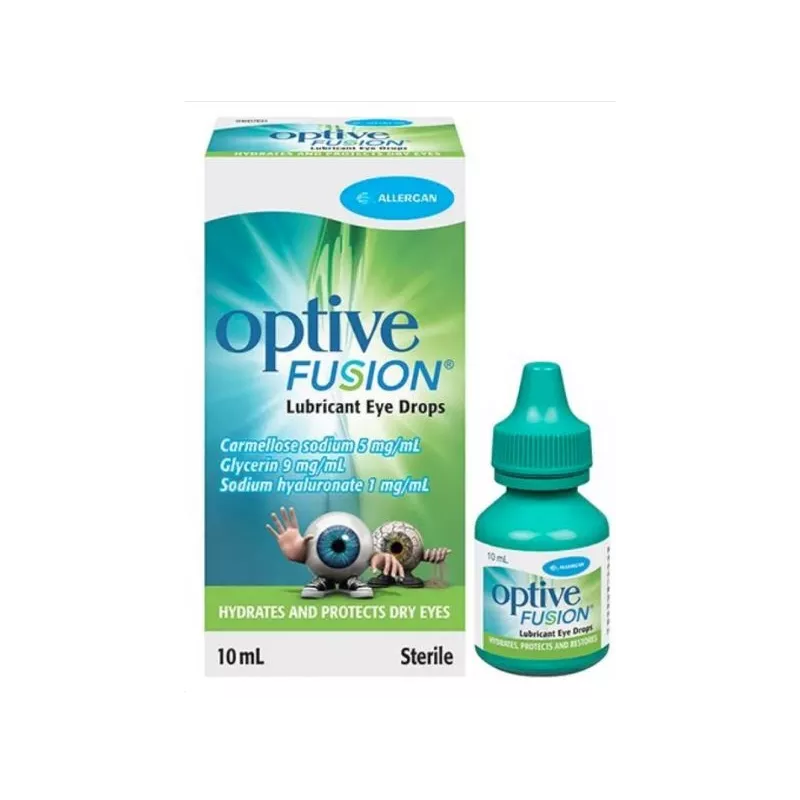 Soluzione sterile multidose, lubrificante e osmoprotettiva della superficie oculare, idrata le cellule epiteliali ripristinando l'equilibrio osmotico e protegge il film lacrimale migliorando lo strato lipidico. Offre un comfort superiore e una prolungata osmoprotezione dai sintomi dell'occhio secco. Optive Fusion è un sostituto lacrimale formulato con la combinazione di acido ialuronico e tecnologia OsmoMax, che contiene carbossimetilcellulosa, combinazione che assicura un sollievo immediato e prolungato nel tempo: questa formulazione offre comfort immediato e prolungato, osmoprotezione e riepitelizzazione della superficie oculare attraverso la migrazione cellulare. Contiene anche il complesso brevettato protettivo purite che immediatamente dopo l'esposizione alla luce (quando si mettono le gocce) degrada nelle componenti naturali della pellicola di lacrime (acqua e cloruro di sodio) e in questo modo è paragonabile ai preparati senza le sostanze conservanti. Optive Fusion quindi migliora e stabilizza il film lacrimale, ripristina la superficie cellulare danneggiata, offre un sollievo immediato e prolungato dai sintomi dell'occhio secco. Queste gocce possono essere usufruite fino a 6 mesi dopo l'apertura; può essere utilizzato anche durante l'applicazione delle lenti a contatto di tutti i tipi; la tecnologia di lubrificazione + osmoprotezione diminuisce la frequenza delle applicazioni delle gocce; la sostanza protettiva purite non irrita l'occhio e si comporta come un preparato senza sostanza conservante.