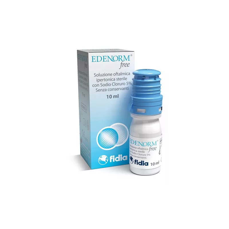 Edenorm free è una soluzione oftalmica ipertonica sterile con sodio cloruro 5%, senza conservanti, utile al trattamento dell'edema oculare. Al flacone di Edenorm free è applicato il contagocce OSD (Ophthalmic Squeeze Dispenser) che, tramite il suo sistema di filtro assoluto e valvola, garantisce il mantenimento della sterilità del prodotto senza l'utilizzo di conservanti.