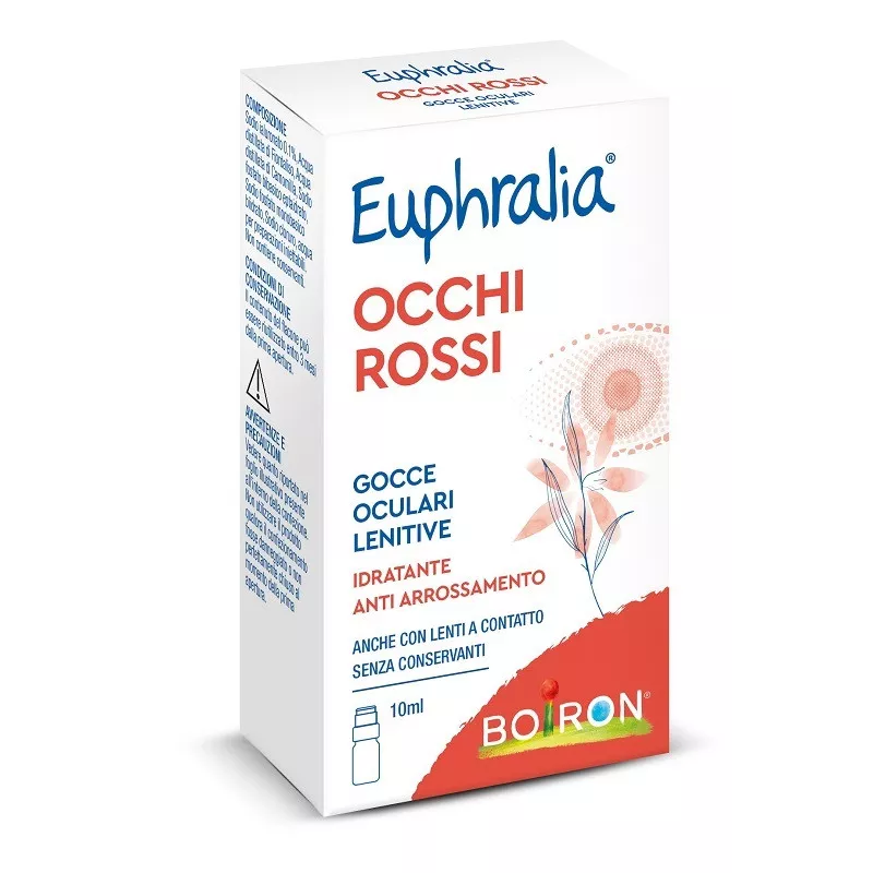 Euphralia OCCHI ROSSI gocce oculari lenitive è una soluzione oftalmica idratante e lubrificante sterile, a pH fisiologico, a base di Ialuronato di sodio, ripartita in un flacone polidose.
