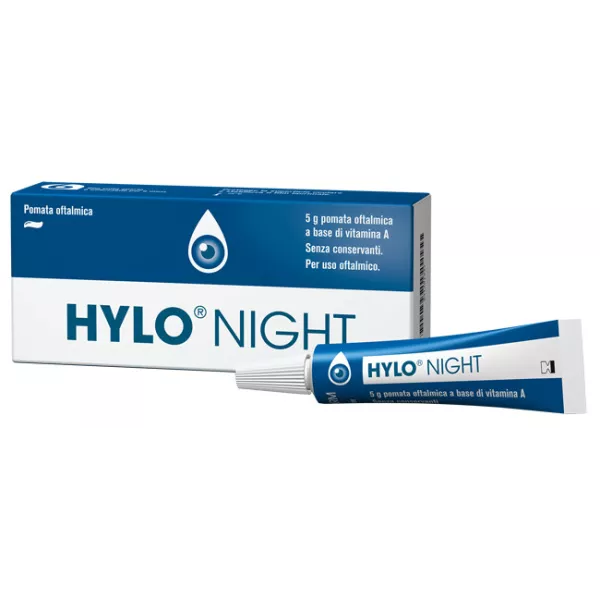 HYLO NIGHT protegge la superficie oculare e stabilizza il film lacrimale. HYLO NIGHT è una pomata oftalmica che grazie alla sua particolare composizione si applica facilmente sulla superficie oculare. La vitamina A in essa contenuta è un costituente naturale del film lacrimale il che favorisce una buona tollerabilità della pomata oftalmica e assicura la completa miscelazione con le lacrime. Allevia la sensazione di bruciore, secchezza o stanchezza oculare. Facilita infine lo scorrimento delle palpebre sulla superficie corneale e congiuntivale.