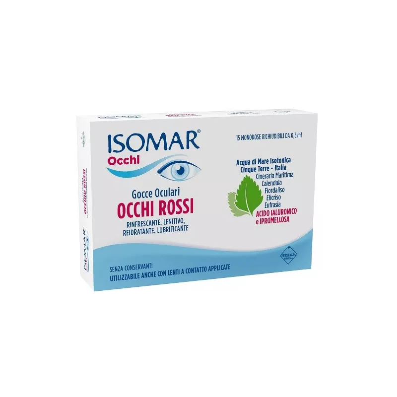 Dona sollievo in caso di arrossamento, irritazione, bruciore, prurito e sensazione di corpi estranei e in seguito a lacrimazione ed affaticamento indotti da fattori quali: esposizione al vento e a raggi solari, polveri, smog, fumo, caldo secco, ambienti climatizzati, permanenza prolungata davanti a schermi video ed uso di lenti a contatto. lsomar Occhi concorre in maniera significativa a lenire i disturbi causati dal contatto dei pollini con la congiuntiva aiutando ad alleviare i sintomi allergici. lsomar Occhi aiuta nei casi di secchezza oculare e si può usare in presenza di qualsiasi tipo di lenti a contatto. Per una maggiore azione lubrificante e lenitiva, è consigliata l'instillazione di lsomar Occhi prima dell'applicazione delle lenti.