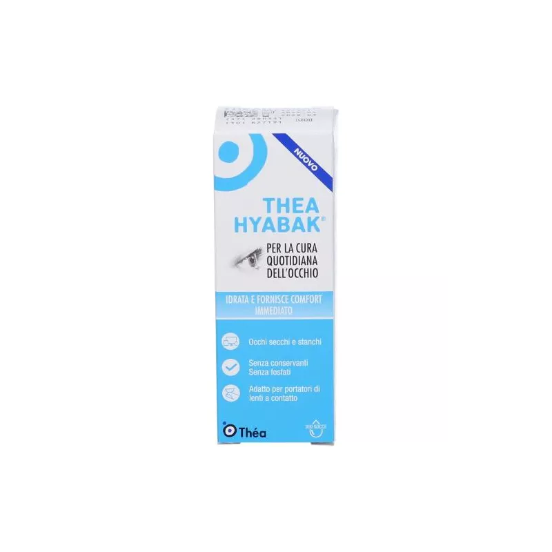 Soluzione sterile, senza fosfati, isotonica e a pH neutro. La soluzione è fornita in un flacone multidose ABAK. Questo dispositivo innovativo e brevettato dispensa il collirio attraverso un filtro da 0,2 mcm, prevenendo qualsiasi contaminazione batterica della soluzione senza l’uso di conservanti. Pertanto, THEAHYABAK è delicato per gli occhi in quanto privo di conservanti. L’assenza di conservanti permette di proteggere i tessuti oculari e non provoca reazioni agli utilizzatori sensibili ai conservanti.