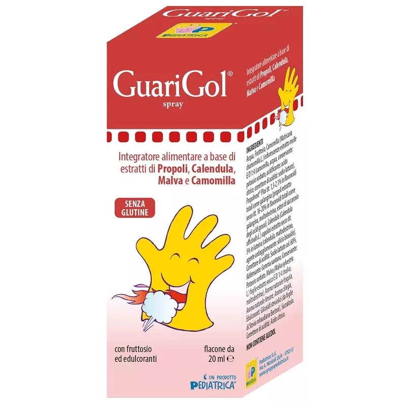 Ingredienti Acqua, fruttosio, camomilla (Matricaria chamomilla L.) infiorescenze estratto molle E/D 1:4 (camomilla, acqua; conservante: potassio sorbato; acidificante: acido citrico; correttore di acidità: sodio lattato), Propolnext plus tit. 1,5-2,1% in flavonoidi totali come galangina (propoli estratto secco tit. 16-20% in flavonoidi totali come galangina, maltodestrina, esteri di saccarosio degli acidi grassi), calendula (Calendula officinalis L.) capolini estratto secco tit. 5% in luteina (calendula, maltodestrina; agente antiagglomerante: silicio biossido); correttore di acidità: sodio lattato sol. 60%; addensante: gomma xantano; conservante: potassio sorbato, malva (Malva sylvestris L.) foglie estratto secco E/D 1:4 (malva, maltodestrina), aroma naturale fragola, aroma naturale limone, aroma ciliegia; edulcoranti: glicosidi steviolici (da foglie di Stevia rebaudiana Bertoni), sucralosio; correttore di acidità: acido citrico.