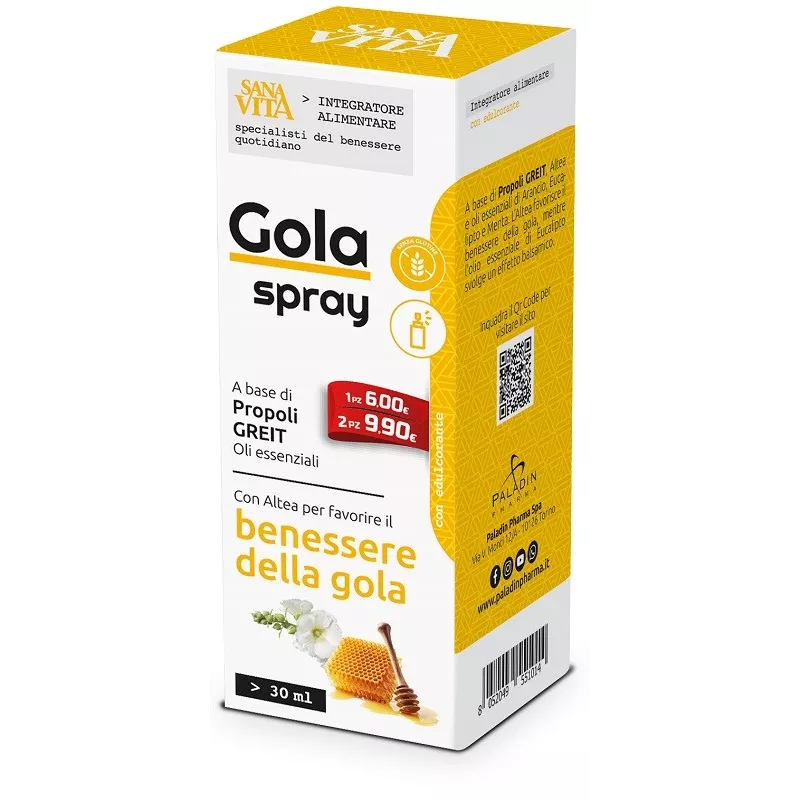 Complemento alimentare a base di propoli GREIT, aloe, altea e oli essenziali di arancio, eucalipto e menta. L’aloe e l’altea favoriscono il benessere della gola, mentre l’olio essenziale di eucalipto svolge un effetto balsamico.
