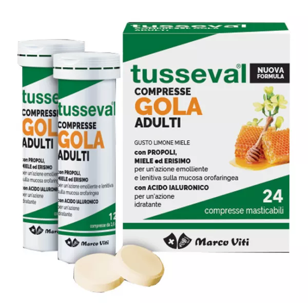 Descrizione Integratore alimentare con propoli, miele ed erisimo che favorisce un’azione emolliente e lenitiva sulla mucosa orofaringea. La formulazione è arricchita dall’ acido jaluronico, molecola con la nota capacità di idratarsi. L’estratto secco di propoli è ottenuto da un sofisticato processo di lavorazione e concentrazione senza l’impiego di solventi organici; inoltre questo estratto secco è stato sottoposto a numerosi esami analitici a garanzia di un prodotto sicuro e di alta qualità. La compressa presenta una leggera effervescenza che favorisce la dispersione e la distribuzione uniforme degli attivi funzionali contenuti.