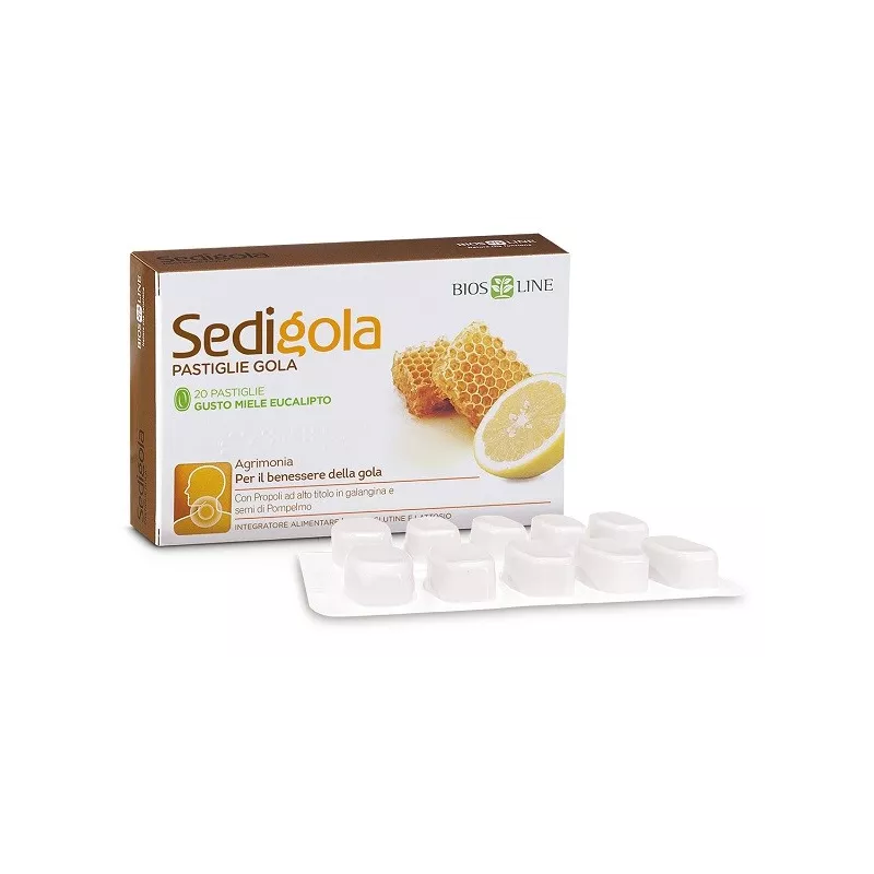 Sedigola Pastiglie Gola è utile per il benessere della gola grazie al suo contenuto di agrimonia, erba o cinale ricca in tannini. La sua formulazione associa le ben note proprietà della propoli con quelle antiossidanti dei semi di pompelmo; inoltre contiene eucalipto che esercita un'azione emolliente e lenitiva sulla mucosa orofaringea e sul tono della voce. Il miele e gli oli essenziali di cannella e menta conferiscono al prodotto un particolare effetto rinfrescante. Sedigola Pastiglie Gola può risultare utile anche a chi è esposto a freddo, fumo, smog e polveri.