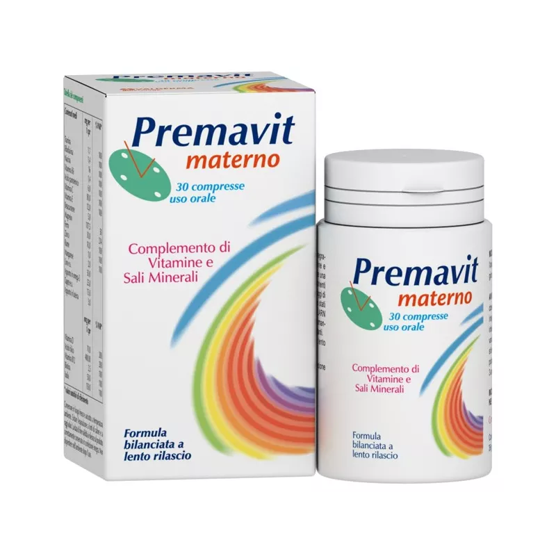 complemento di vitamine e sali minerali, a rilascio lento, che garantisce il 100% dei livelli di assunzione raccomandati dai nutrienti (L.A.R.N.) durante la gestazione.