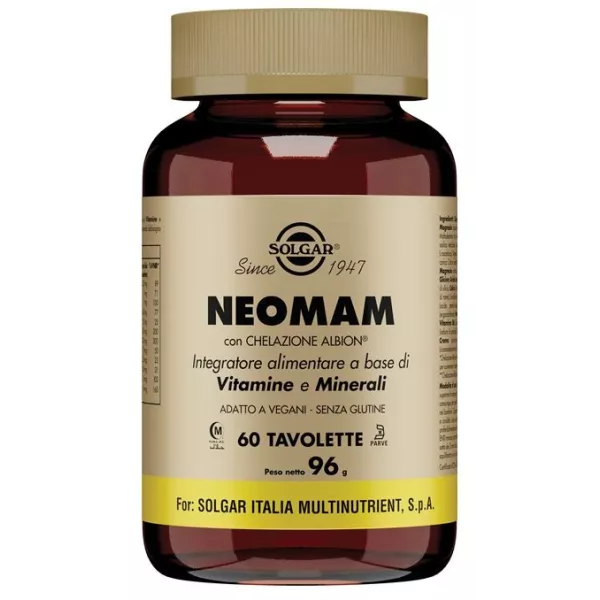 Descrizione Integratore alimentare contenente ben 24 nutrienti tra vitamine e minerali opportunamente dosati secondo i VNR* specifici per la donna in gravidanza. NEOMAM può essere utilizzato anche durante l'allattamento a completamento di un'alimentazione che dev'essere comunque il più variata possibile. NEOMAM contiene tra gli altri nutrienti acido folico e iodio, nutrienti raccomandati dall'Organizzazione Mondiale della Sanità. In particolare, l'assunzione integrativa di acido folico aumenta lo stato del folato materno. Un basso stato del folato materno è un fattore di rischio per lo sviluppo di difetti del tubo neurale del feto. NEOMAM fornisce inoltre ferro bisglicinato, un minerale scelto in una forma biochimica brevettata, facilmente assimilabile e digeribile. La formula è arricchita con calcio, beta-carotene ed altri importanti elementi nutritivi come cromo, selenio spesso mancanti nelle formule prenatali.
