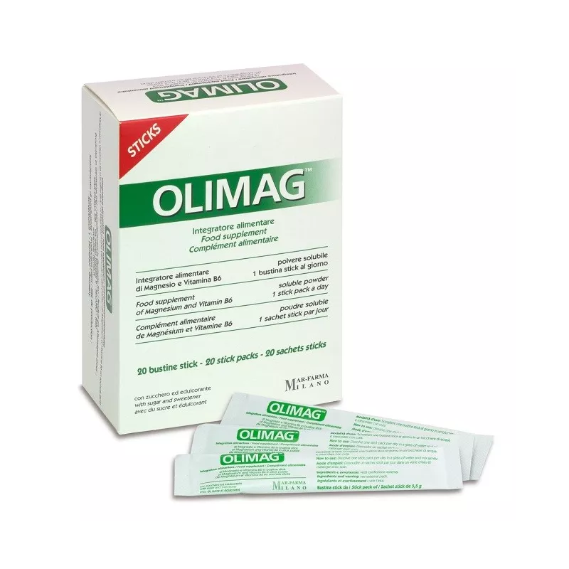 Sciogliere una sola bustina stick di Olimag in un bicchiere d’acqua, mescolarecon cura e bere lontano dai pasti.